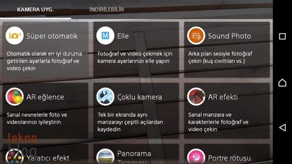 M4 Aqua’nın Kamera uygulaması daha önce Sony Xperia telefonlarında gördüğümüz gibi, fazla bir değişiklik yok. Otomatik modda tüm ayarlar ortam koşullarına göre otomatik olarak yapılıyor ve size sadece çekim yapmak kalıyor. Elle modunu seçerseniz farklı çözünürlükleri seçebilir, beyaz dengesi, pozlama gibi ayarları değiştirebilirsiniz. Bunun dışında AR Eğlence, Sound Photo, AR efekti, Panorama gibi farklı modları görüyoruz. Bu modlara TimeLapse, Vine, PhotoSuite, Flightradar 24 Pro ve benzeri araçları da indirerek yenilerini ekleyebilirsiniz.