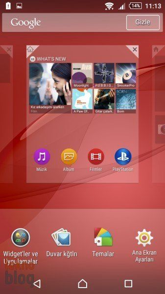 Xperia UI kullanıcı arayüzünün sade ancak çekici tasarımı Lollipop gelse bile korunuyor. Parmağınızı ana ekrandayken kıstırma hareketi yaparak kişiselleştirme ekranına erişebilir, buradan yeni kısayollar, widget’lar ekleyebilir veya farklı renkteki temalardan istediğinizi seçerek telefonunuzun görünümünü değiştirebilirsiniz.