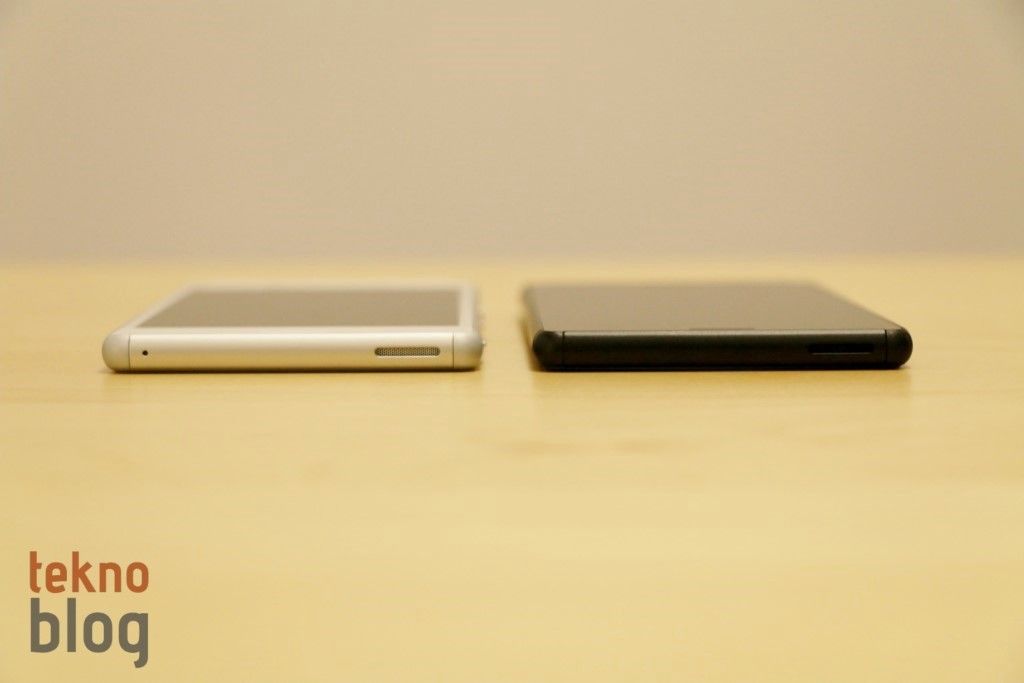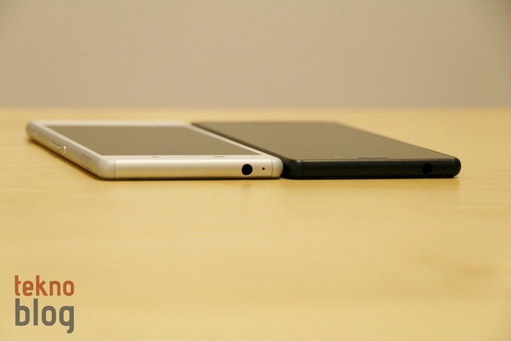 M4 Aqua’nın ekranının altında herhangi bir fiziksel tuş görmüyoruz. Ekranın üstünde ve altında iki adet ızgara bulunuyor, bunlardan üstteki ahize hoparlörü olarak işlev görürken alttakinin tasarımda simetriyi sağlama dışında pek işlevi yok gibi görünüyor. Çünkü Xperia M4 Aqua’nın alt kenarında hoparlör ve mikrofonu görüyoruz. Üstte de 3.5 mm. kulaklık jakı ve ikinci mikrofon var. Sol kenarda microUSB portu ve bir kapak arkasına gizlenen microSD kart yuvası varken, sağ kenarda ise kapağı açılarak erişilen nanoSIM kart yuvası, bir Xperia klasiği olan güç butonu ve ses tuşları bulunuyor. Ayrıca bu kenara bir de kamera tuşu eklenmiş. Bu arada Xperia M4 Aqua’nın ön yüzünde 5 megapiksel kamera bulunuyor. Arkada ise 13 megapiksel kamera ve LED flaş ikilisi sol üst köşeye gelecek şekilde yerleştirilmiş. NFC alanı, Sony ve Xperia logoları ortalanacak şekilde alt alta yerleştirilmiş.