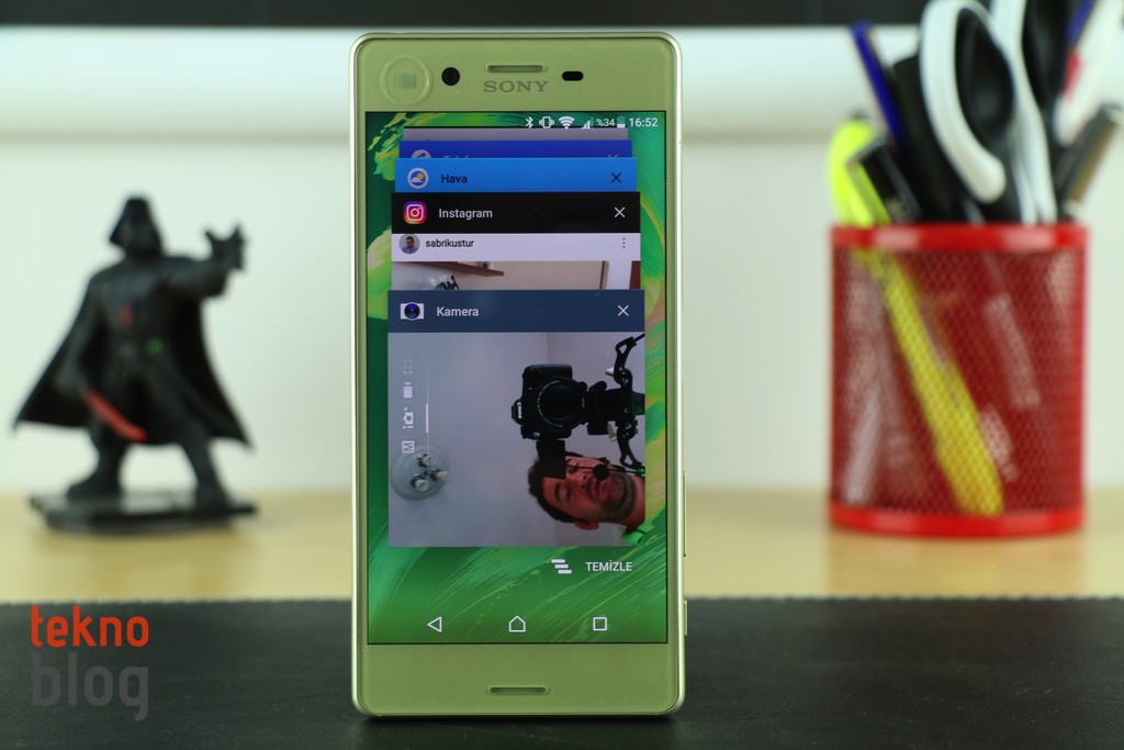 Kablosuz bağlantı desteklerine baktığımızda Wi-Fi 802.11 a/b/g/n/ac, Wi-Fi Direct, Bluetooth 4.2, A-GPS ve GLONASS destekli GPS, NFC gibi geniş bir listenin yer aldığını görüyoruz. Kategori 6 LTE desteği de mevcut. Bu da saniyede 300 Mbit’e varan indirme hızlarına ulaşılabileceği anlamına geliyor. Sinyal kalitesi bakımından Xperia X’in biraz zayıf olduğunu gözlemledik. Teknoblog ofisindeki masamızda, başka telefonların daha yüksek bir çekim seviyesi yakaladığını bildiğimiz, daha fazla çubuğun dolu olduğunu gördüğümüz ortamda Xperia X sadece iki çubuk ile şebekeden aldığı sinyal gücünü gösteriyordu. Belki yazılım güncellemesiyle Sony, şebeke performans konusunda iyileştirmeler sunabilir.