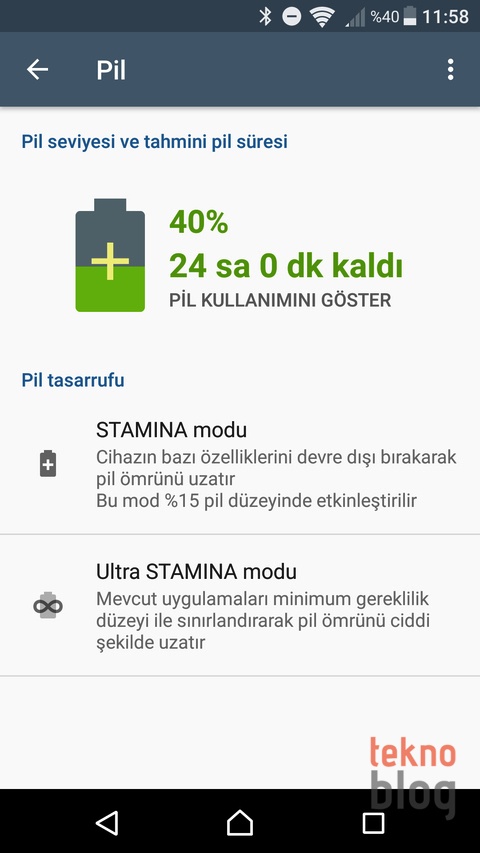 Xperia X’te Quick Charge 2.0 desteği mevcut. Bu da telefonun pilinin yüzde 0’dan 100’lük doluluğa bir saatin biraz üstünde ulaşabildiği anlamına geliyor. Bunun için kutusundan çıkan şarj adaptörünü ve microUSB kablosunu kullanmalısınız. Bu arada Sony’nin STAMINA ve Ultra STAMINA modları da mevcut. Bunlar sayesinde de telefonun pili az kaldığında bazı özellikleri sınırlandırarak veya mevcut uygulamaları minimum gereklilik düzeyiyle sınırlandırarak pil ömrünü uzatabilirsiniz.