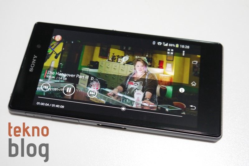 Sony Xperia Z1’in 5 inç 1080p ekranının Triluminos teknolojisi sayesinde canlı renkler sunduğunu, X-Reality mobile sayesinde de kontrast ve keskinliğin daha da iyi hâle getirildiğini belirtmiştik. Bu sayede Xperia Z1 üzerinde video izlemek daha keyifli hâle geliyor, tabii ki ekranı tam karşınıza aldıysanız, yanınızda sizinle video izleme keyfini paylaşacak birisi yoksa. Aksi takdirde işin içine görüş açısı faktörünü de katmak gerekecektir. Xperia Z1’in ekranında 1080p videolar gerçekten hayranlık uyandıracak bir görüntü kalitesiyle izlenebiliyor.