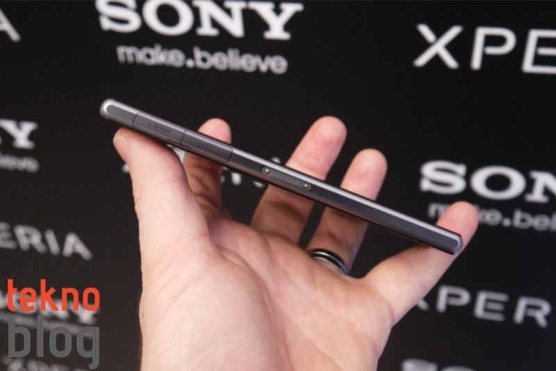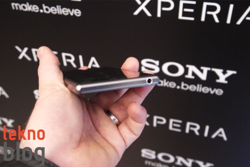 Sony Xperia Z’de özel kamera tuşu yoktu, hoparlör sağ kenarda alta doğru yer alıyordu. Xperia Z1’de kamera tuşu eklendiği için hoparlör de aşağı kaydırılmış. Sol kenarda da microSD kart yuvası ve MHL destekli microUSB portu yine kapaklar altında gizleniyor. Bunların hemen altında da yerleştirme istasyonlarının bağlantısını sağlayan iki uçlu bağlantı yuvası bulunuyor.