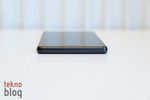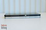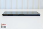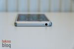 Sağ kenarda microSD ve nanoSIM kart yuvaları, bir kapakla kapatılmış şekilde duruyor. Sony’nin Xperia Android telefonlarının ve tabletlerinin bir klasiği hâline gelen küçük, yuvarlak, metal güç butonu da bu kapağın hemen altında yer alıyor. Daha aşağı indiğimizde ses tuşlarını ve kamera butonunu görüyoruz. Kamera butonunun varlığı özellikle su altı çekimlerde kolaylık sağlıyor. Ne de olsa su altında dokunmatik ekran işlemediği için, fiziksel tuş yardımıyla fotoğraf çekmek veya video kaydını başlatmak mümkün hâle geliyor. Alt kenarda herhangi bir tuş, giriş-çıkış yer almazken sol kenarda kayış geçirmeyi sağlayan yuva, çift pinli bağlantı noktası ve bir kapak arkasında yer alan microUSB portu bulunuyor. Üstte de mikrofon ve 3.5 mm. kulaklık jakını görüyoruz.