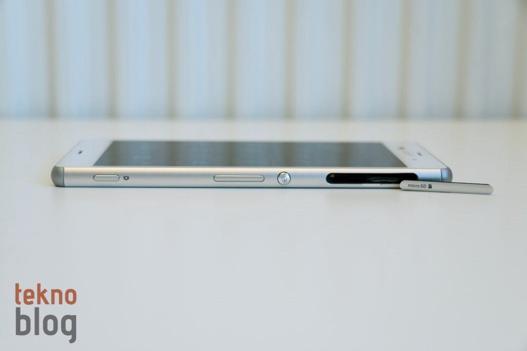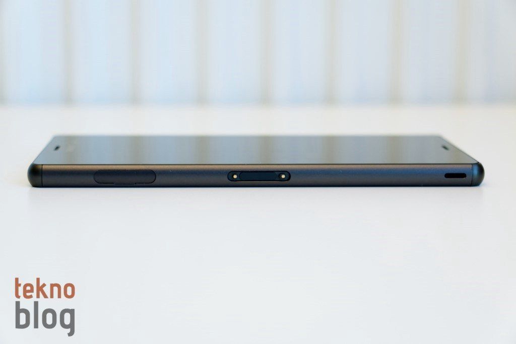 Sağ kenarda microSD ve nanoSIM kart yuvaları, bir kapakla kapatılmış şekilde duruyor. Sony’nin Xperia Android telefonlarının ve tabletlerinin bir klasiği hâline gelen küçük, yuvarlak, metal güç butonu da bu kapağın hemen altında yer alıyor. Daha aşağı indiğimizde ses tuşlarını ve kamera butonunu görüyoruz. Kamera butonunun varlığı özellikle su altı çekimlerde kolaylık sağlıyor. Ne de olsa su altında dokunmatik ekran işlemediği için, fiziksel tuş yardımıyla fotoğraf çekmek veya video kaydını başlatmak mümkün hâle geliyor. Alt kenarda herhangi bir tuş, giriş-çıkış yer almazken sol kenarda kayış geçirmeyi sağlayan yuva, çift pinli bağlantı noktası ve bir kapak arkasında yer alan microUSB portu bulunuyor. Üstte de mikrofon ve 3.5 mm. kulaklık jakını görüyoruz.