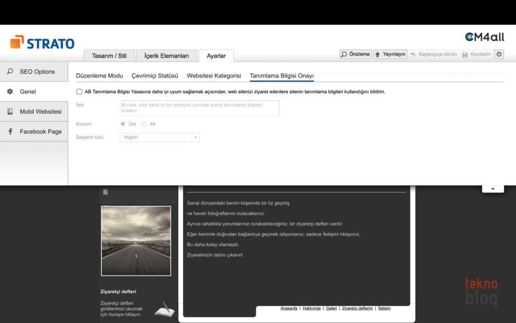 Ayarlar bölümü altında ise web sitesinin genel ayarları var. Örneğin SEO seçenekleri altından sayfanın başlığını, anahtar kelimelerini veya açıklama metnini ayarlayabilirsiniz. Ayrıca Google Analytics ve benzeri izleme kodlarını da buradan ekleyebilirsiniz. Web sitenizi Facebook sayfasına da bu bölümden bağlamanız mümkün. Mobil Websitesi bölümünden ise web sayfanızın akıllı telefon uyumlu versiyonunu açabilir, başlangıç sayfası düzenlemelerini yapabilirsiniz.