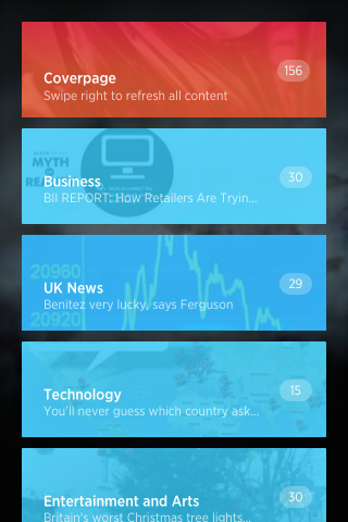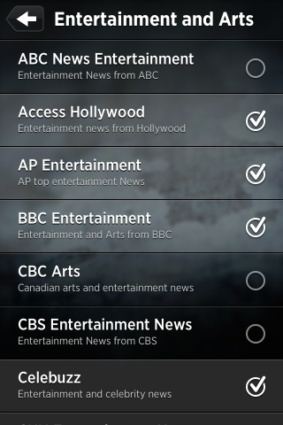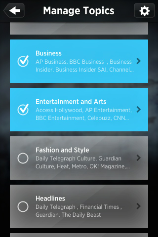 Uygulamada kullanıcılar eğlenceden tasarıma, bilimden siyasete kadar uzanan geniş bir kategori yelpazesinde yer alan haberlere ulaşabiliyorlar. Kategorilere ait haberlerin hangi kaynaklardan özetleneceğine de kullanıcı listeden yaptığı seçim aracılığı ile karar veriliyor. Uygulamanın yaptığı lisans anlaşmaları çerçevesinde kullanıcılara seçim için hemen hemen her kategoride oldukça uzun bir listenin sunulduğunu belirtmek gerek. Kaynakların seçilmesinin ardından ise kullanıcılar hangi kategorileri ana ekranlarında görmek istediklerine karar verebiliyorlar.