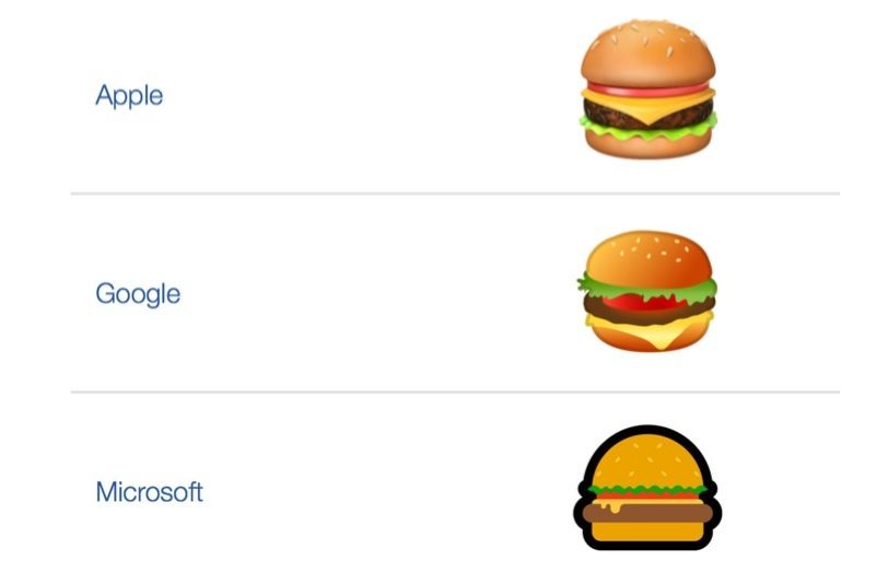 Baekdal’ın tweeti üzerine diğer şirketlerin hamburger emojileri de mercek altına alındı. Sadece Google’ın peyniri hamburger köftesinin altına yerleştirdiği görülürken, sosyal medyadaki hamburger uzmanları peynirin tam anlamıyla erimesi için köftenin üstüne yerleştirilmesi gerektiğini belirtti.
