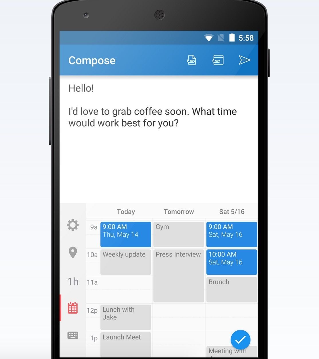 Sunrise Meet üçüncü taraf klavyenin yazı yazmak dışında ne için kullanılabileceğini gösteren güzel bir örnek olma özelliğini taşıyor. Bu özel klavye sayesinde takvim kaydı belirlerken uygulamalar arasında gidip gelme ihtiyacı ortadan kalkıyor, kayıtlar hızlı şekilde oluşturuluyor.