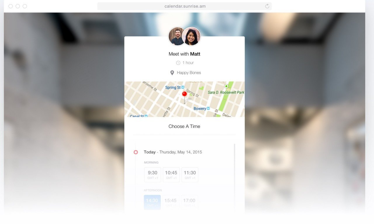 Gönderdiğiniz kişi oluşturulmuş Sunrise Meet sayfasına açılan bir bağlantı alacak, buradan da oluşturulmuş randevu kaydına katılımını veya reddini bildirebilecek.