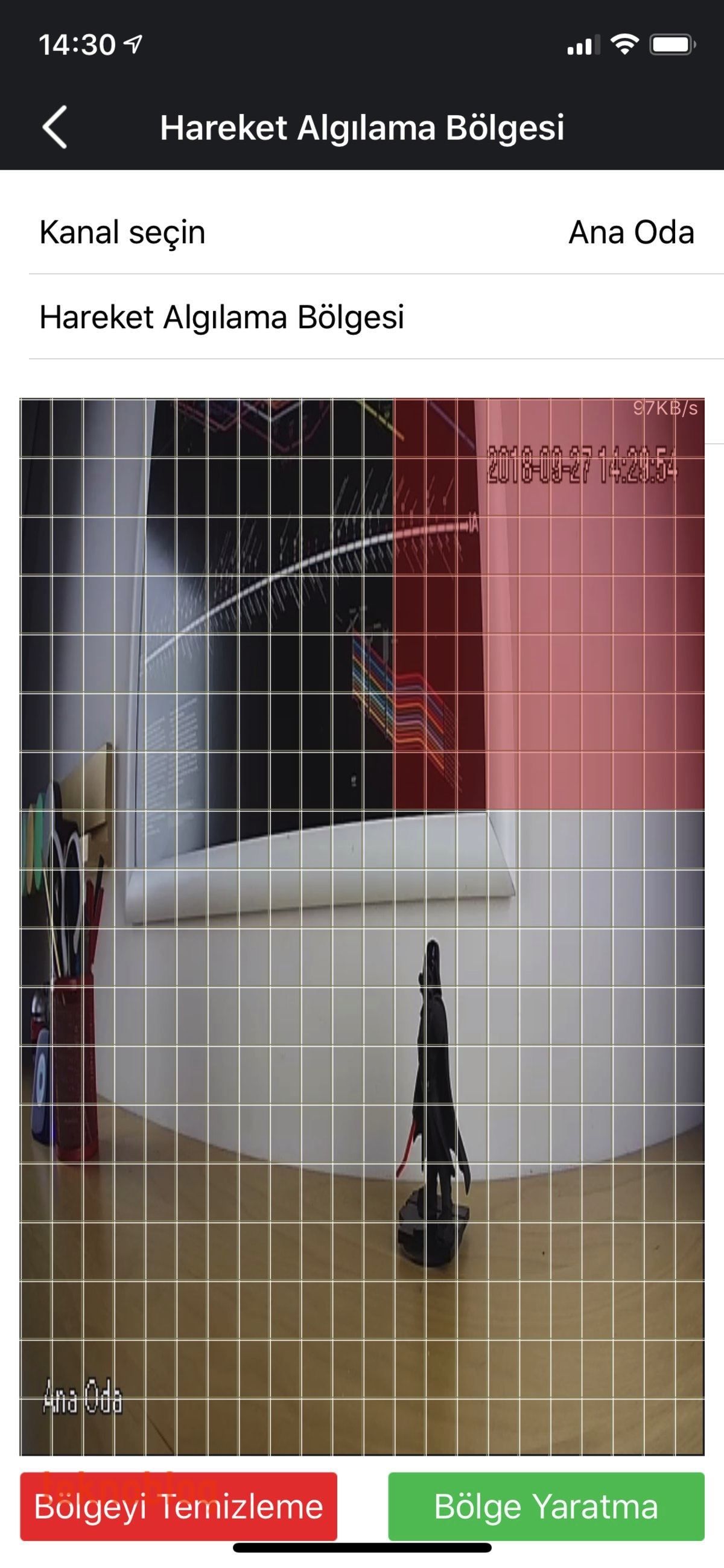 Ayarlar içinde iki bölüm var ki, bunlar SuperCam’i düzgün biçimde kullanmak için önemli. Bunlardan ilki hareket algılama bölgesi. Kameranın görüş alanı içinde, ister tüm alanı, isterseniz belirlediğiniz bazı bölümleri hareket algılama bölgesi olarak konumlandırabilirsiniz. Evde veya ofiste olmadığınız zamanlarda, belirlediğiniz alanlar içinde hareket tespit edilirse, hem 1 dakikalık görüntü kaydı yapılıyor, hem de hareket algılaması olduğuna dair bildirim size iletiliyor. Hareket algılama bölgesi oluşturma veya mevcut bölgeleri düzenleme arayüzü oldukça kullanışlı. Karelere bölünmüş görüntü alanı içinde kareleri seçerek hareket alanı belirlemesi yapabilirsiniz. Hareket hassasiyeti gayet yüksek. Öyle ki, gece vakti çakan şiddetli bir şimşek, kameranın alarm vermesine neden olabiliyor.