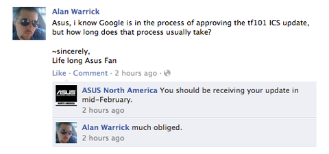 Birinci nesil ASUS Eee Pad Transformer sahipleri Android 4.0 güncellemesini merakla bekliyor olmalı. Daha önce çıkan haberler güncellemenin bu ayın ortasında çıkacağı şeklindeydi, ancak ASUS'un verdiği son bilgi güncellemenin Şubat