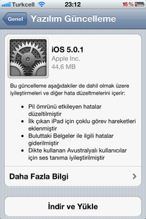 iOS 5.0 yayınlandıktan yaklaşık bir ay sonra ilk ara güncelleme geldi. iOS 5.0.1 güncellemesiyle birlikte daha önce keşfedilen çeşitli hatalar gideriliyor. Bu güncelleme kullanıcıların kablosuz bağlantı üzerinden, cihazı bilgisayara bağlamaya