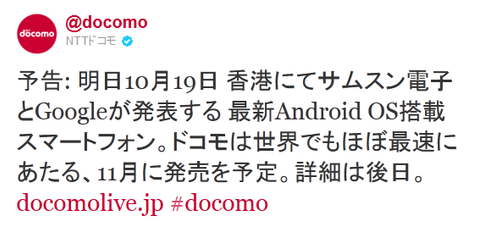 Japonya'da faaliyet gösteren mobil operatör NTT DoCoMo yarın sabaha karşı Hong Kong'da Google ve Samsung tarafından tanıtılması beklenen ilk Android Ice Cream Sandwich cihazı Galaxy Nexus'un varlığını doğruladı. Mobil operatörün
