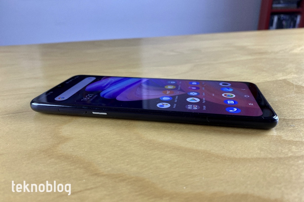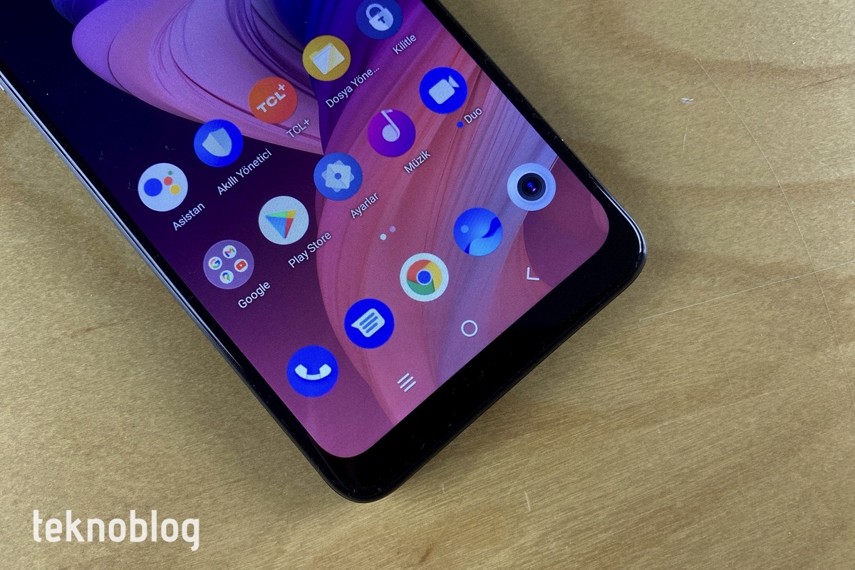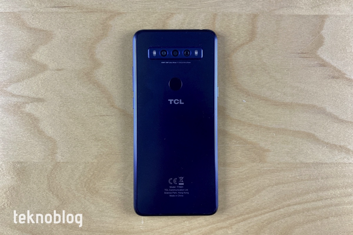 Bu kamera sisteminin altında ise yuvarlak parmak izi tarayıcısı bulunuyor. TCL logosu da parmak izi tarayıcısının altına yerleştirilmiş. Plastik arka panel, parmak izlerini biraz yoğun şekilde gösteriyor. Buna ek olarak, eller terliyken veya ıslakken arka panel biraz kayganlaşıyor. Akıllı telefonun kutusundan çıkan şeffaf kılıf, bu sıkıntıları bir nebze de olsa ortadan kaldırıyor.
