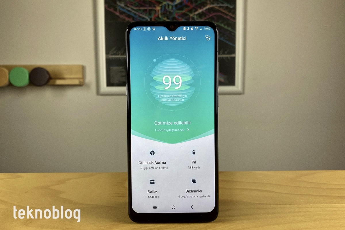 Ancak daha önce TCL’in telefonlarında gördüğümüz bazı gereksiz ana ekran unsurları TCL 10 SE’de de mevcut. Bu unsurlar arasında yine “Kilitle” ikonu ön plana çıkıyor. Söz konusu ikon, güç butonuyla aynı işlevi görüyor. Benzer bir durum, yine ana ekranda yer alan Optimizer ikonu için de geçerli. Bu ikona dokunulduğunda telefonun performansı optimize ediliyor. Ancak aynı işlem yine ana ekran üzerinden erişilebilen Akıllı Yönetici uygulaması üzerinden de yapılabiliyor.