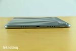 Tablet düşey vaziyette tutulduğunda üst kenarda güç tuşu, USB-C girişi ve hoparlör ızgaraları yer alıyor. Alt kenarda da iki hoparlör ızgarası bulunuyor. Yani tablette toplamda dört hoparlör ızgarası var. Ancak bunlardan sadece iki tanesinden ses çıkışı mevcut. İki kenarda da bir ızgara aktif olarak çalışıyor.