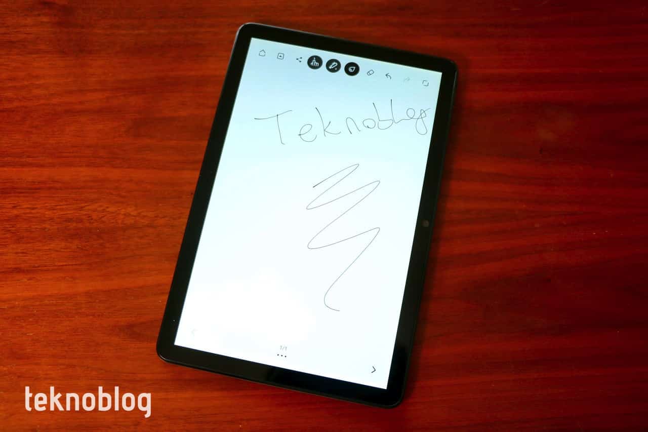 TCL Tab 10S’in kutusundan bir ekran kalemi de çıkıyor. Böylelikle ek masrafa girmeden ekran üzerinde not alma veya çizim yapma gibi işleri yerine getirebilirsiniz. Ne var ki, ekran kaleminin sunduğu deneyimin Samsung Note serisi telefonlarında veya Tab S7 ve bunun gibi tabletlerinde gördüğümüz ekran kalemiyle not alma veya çizim yapmaya yaklaşmadığını görüyoruz. Bir kağıda veya deftere yazarmış gibi, avuç içinizi ve bileğinizi ekrana, fiziksel destek almak amacıyla temas ettirdiğinizde, kalem hareketlerinizi ekrana tam olarak yansıtılmıyor. Kalemi kullanırken kalem ucundan başka herhangi bir şeyin ekrana temas etmemesi gerekiyor. Yani, çoklu dokunma desteği çok gelişmiş değil. Buna rağmen belge imzalama veya benzeri işler için kutudan çıkan bu ekran kalemi kullanışlı olacaktır.