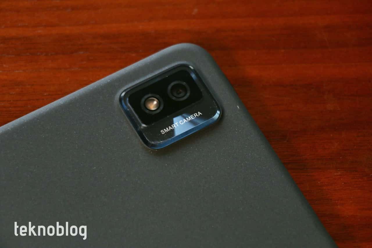 Arka taraftaki düzen de yatay tutuşa göre yapılmış. TCL logosu yatay biçimde yerleştirilmiş. Ona karşılık gelen diğer köşede ise 8 megapiksel kamera ve LED flaşın bir arada bulunduğu ve dışa doğru hafif çıkıntı yapan kamera modülü var.