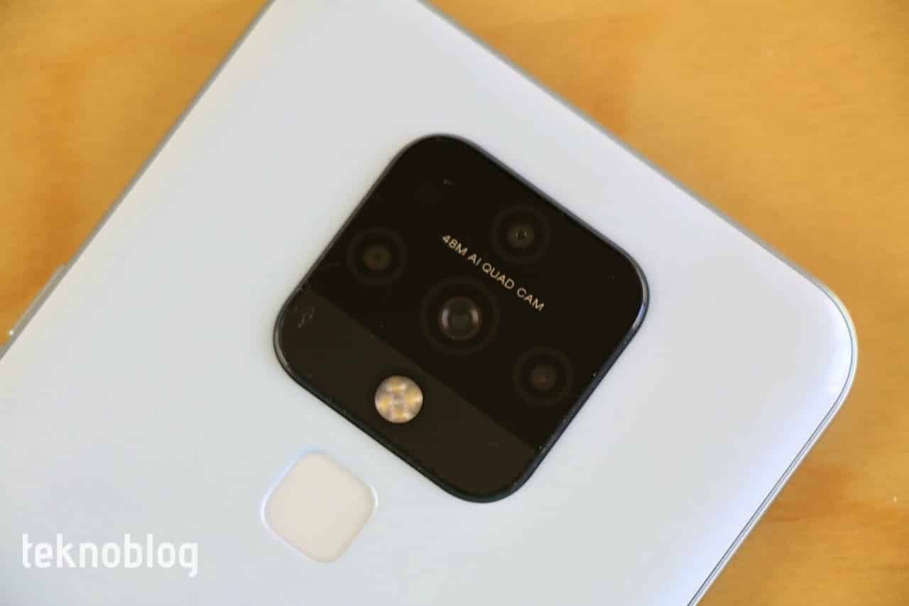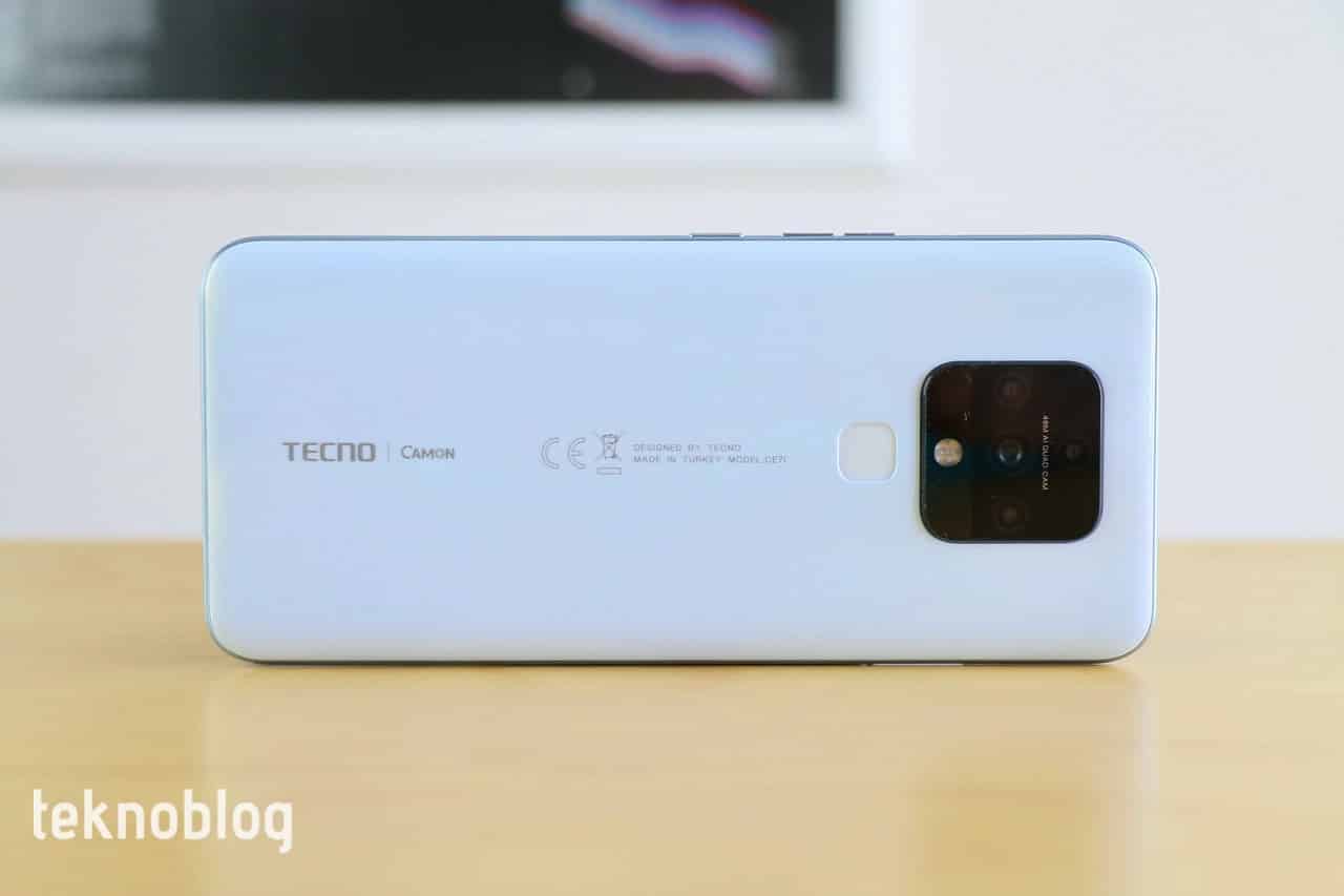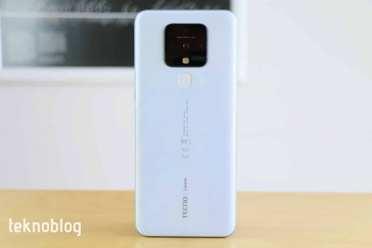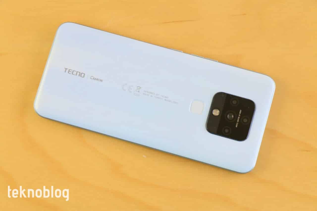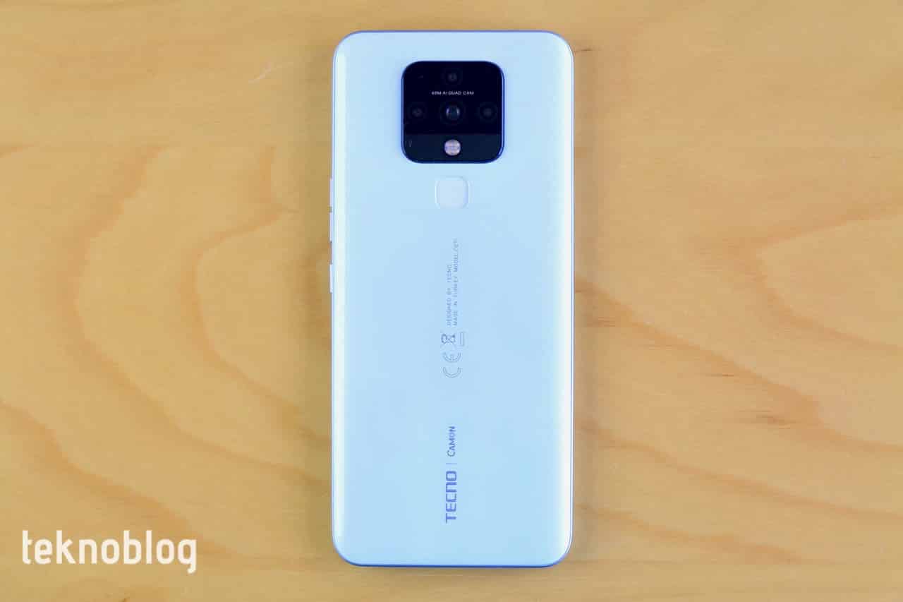 Tecno Camon 16’nın arka panelinde ise göze ilk olarak kare şeklindeki kamera adası çarpıyor. Burada yer alan dört kamera sensörünün teknik özelliklerine daha sonra değineceğiz. Kamera sensörünün hemen altında ise telefonun parmak izi tarayıcısı bulunuyor. Bu tarayıcıya hem sağ hem de sol elin işaret parmaklarıyla rahatlıkla erişilebiliyor.