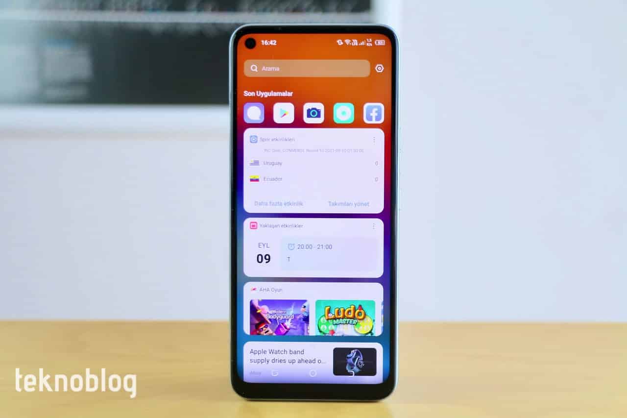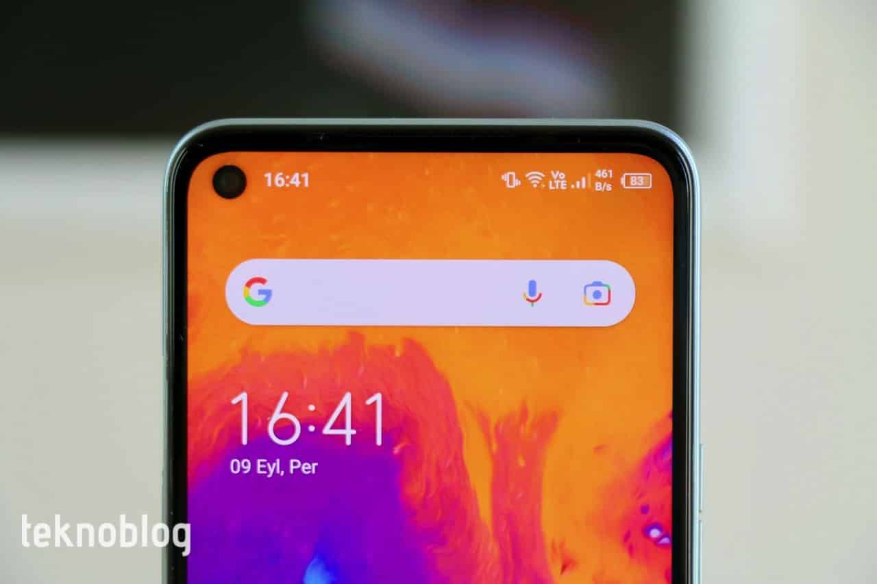 Ekranın etrafındaki çerçevenin günümüz standartlarına kıyasla biraz daha kalın olduğunu belirtmek gerekiyor. Alt kenar çerçevesi de diğer kenarlardan daha kalın. Ekranın sol üst köşesinde ise telefonun 16 megapiksel ön kamerasına ev sahipliği yapan delik bulunuyor.