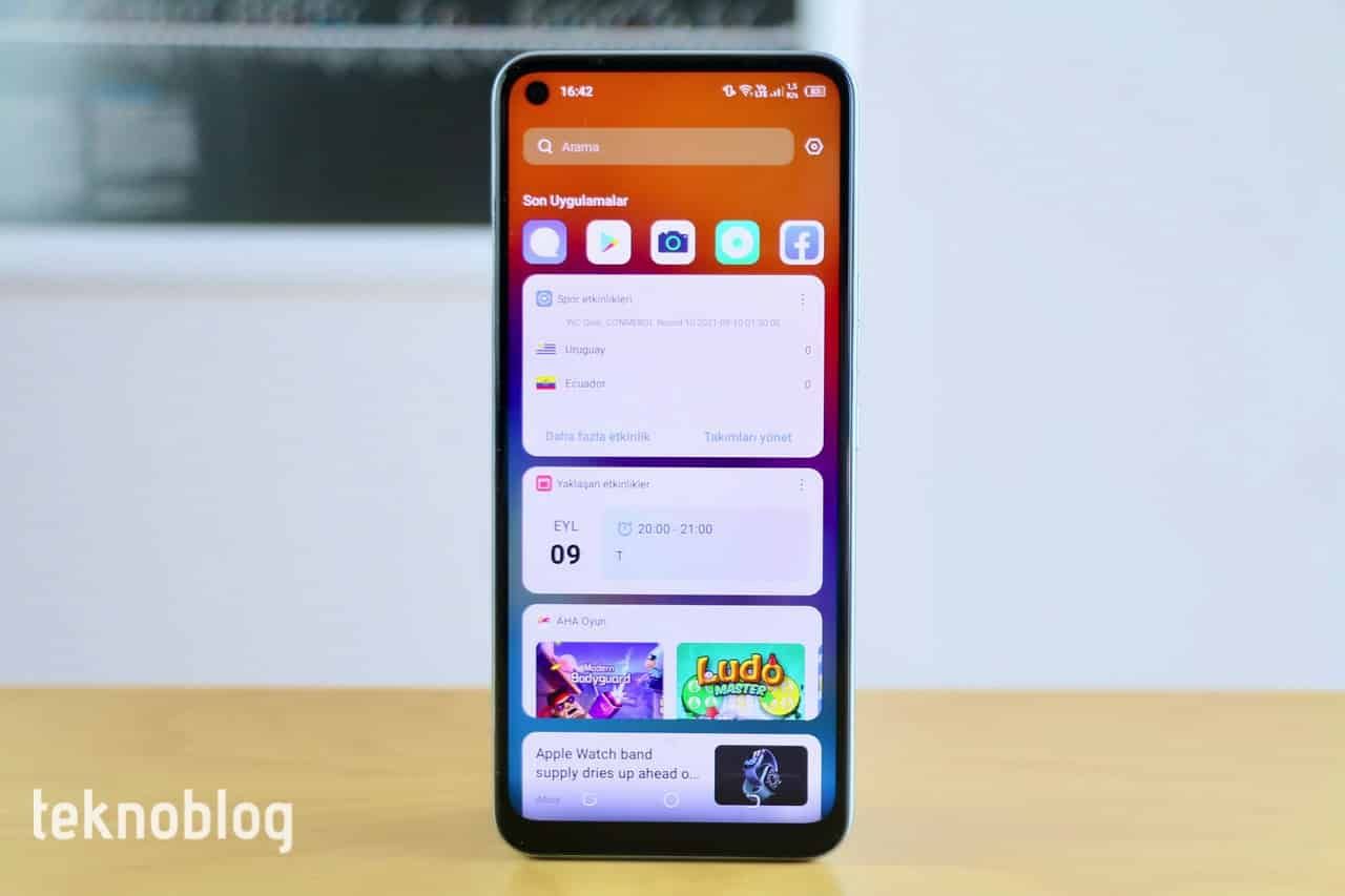 Tecno Camon 16’nın ana ekranında sağa doğru sürükleme yapıldığında bilgi ve öneri ekranı ortaya çıkıyor. Kart tasarımına sahip bu ekran üzerinden tema değiştirilebiliyor, takvim kayıtları ve hava durumu bilgileri görülebiliyor. AHA Games üzerinden indirilebilen anında oyunlarla ilgili öneriler de burada sunuluyor. Bu ekran kullancı tercihleri doğrultusunda özelleştirilebiliyor.