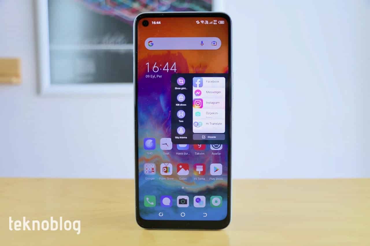 Oppo ve Realme’nin telefonlarında gördüğümüz akıllı kenar çubuğunun bir benzeri HiOS’te de bulunuyor. Ana ekranda ses kontrol tuşlarının hizasından sola doğru sürükleme hareketi yapıldığında küçük bir çubuk ortaya çıkıyor. Bu çubuk sayesinde belli uygulamalar hızlı biçimde başlatılabiliyor. Hızlı başlatılacak uygulamalar kullanıcılar tarafından belirlenebiliyor. Ekran görüntüsü almak, tarama yapmak veya güç artırma gibi işlemler için de bu çubuk kullanılabiliyor.