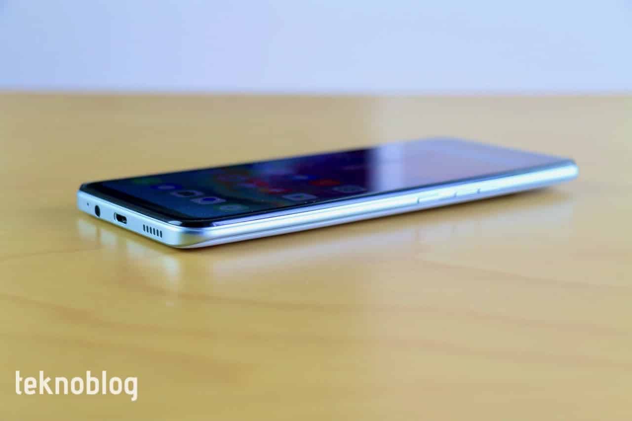 Tecno Camon 16’da ekranın alt kenarında ise soldan sağa doğru sırasıyla mikrofon, kulaklık jakı, microUSB girişi ve hoparlör ızgarası bulunuyor. USB-C’nin yaygın standart hâline geldiği bir ortamda microUSB’nin tercih edilmesinin hayal kırıklığı yarattığını söylemek gerekiyor. Hoparlörden çıkan ses makul yükseklikte olsa da, kalitesi pek tatmin edici seviyede değil.
