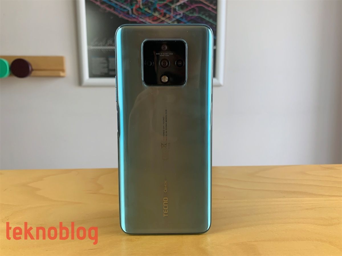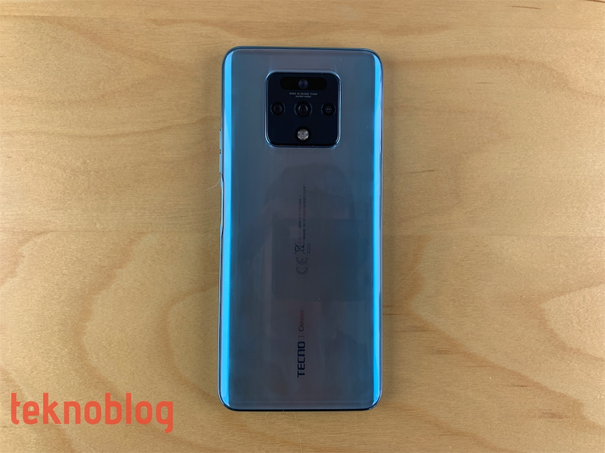 Arka panelde en dikkat çekici unsur ise kare şeklindeki kamera modülü. Panelin orta üst kısmında yer alan bu modülde dört sensör ve LED flaş bulunuyor. Kamera sisteminin özelliklerine de ilerleyen bölümlerde değineceğiz. Panelin alt kısmında ise Tecno yazısı göze çarpıyor.