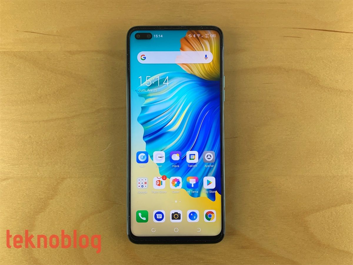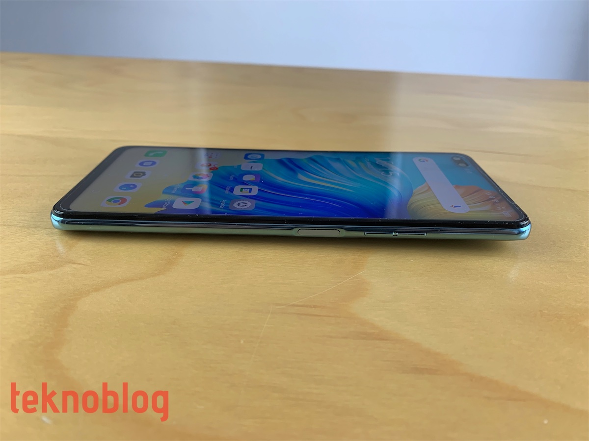 Ekranın çerçevelerinin 2020’de çıkan diğer telefonlara kıyasla biraz daha kalın olduğu söylenebilir. Alt kenar çerçevesinin diğer üç kenar çerçevesine daha kalın olduğunu da ayrıca belirtmek gerekiyor. Camon 16 Premier’in ahize hoparlörü de üst kenara kamufle edilmiş.