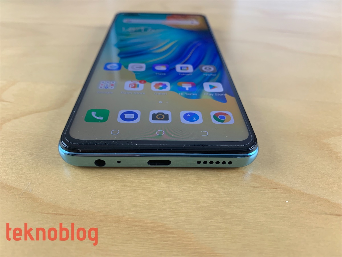 Telefonun alt kenarında ise soldan sağa doğru sırasıyla 3.5 mm. kulaklık jakı, mikrofon, USB-C girişi ve hoparlör ızgarası bulunuyor. Bu hoparlör ızgarasından çıkan sesin yükseklik seviyesi iyi olsa da, kalitesi konusunda aynı şeyi söylemek pek kolay değil. Ses en yüksek seviyeye çıktığında oldukça yüksek bir tiz duyuluyor.