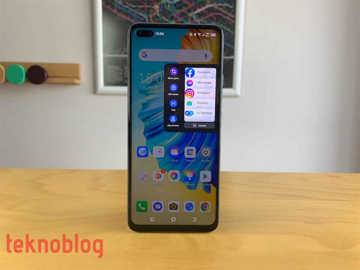 Oppo ve Realme’nin telefonlarında gördüğümüz akıllı kenar çubuğunun bir benzeri HiOS’te de mevcut. Ana ekranda ses kontrol tuşlarının hizasından sola doğru sürükleme hareketi yapıldığında ortaya bir çubuk çıkıyor. Bu çubuk belli uygulamaları hızlı biçimde başlatmayı sağlıyor. Hızlı başlatılacak uygulamalar kullanıcılar tarafından belirlenebiliyor. Ekran görüntüsü almak, tarama yapmak veya güç artırma gibi işlemler de bu çubuk üzerinden yapılabiliyor.