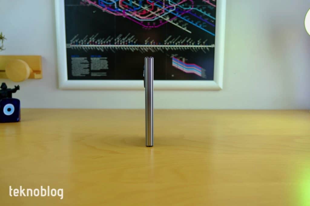 PHANTOM V Fold, açık hâldeyken 6.9 milimetrelik kalınlığa sahip. Bu değerle birlikte klasik bir tabletle aynı seviyelerde bir kalınlığı sunmuş oluyor. Kapalı olduğunda ise kalınlık 14.5 milimetre ki, bunun da bir katlanabilir telefon için makul aralıklarda olduğunu söyleyebiliriz. Ağılık tarafında ise 299 gram değerinin büyük ekranlı bir akıllı telefona göre biraz yüksek olsa da, katlanabilir telefon için bunun makul aralıklarda olduğunu söylemek yanlış olmayacaktır.