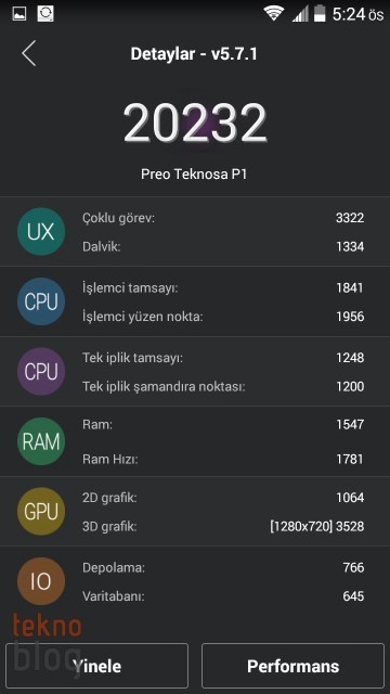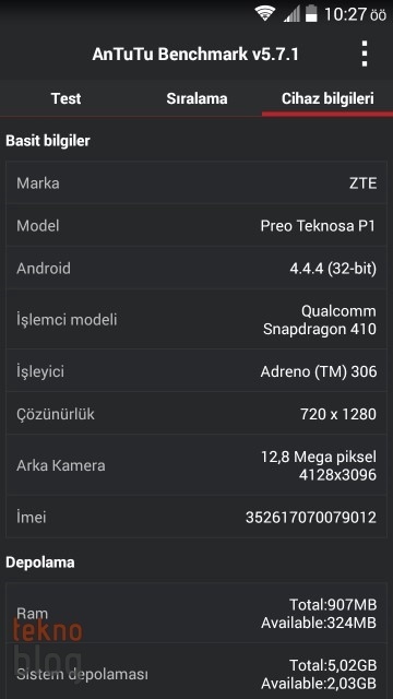 DİĞER SNAPDRAGON 410 İŞLEMCİLERDE GÖRDÜĞÜMÜZ BENCHMARK PUANLARINI TEKNOSA PREO P1 DE TOPLUYOR