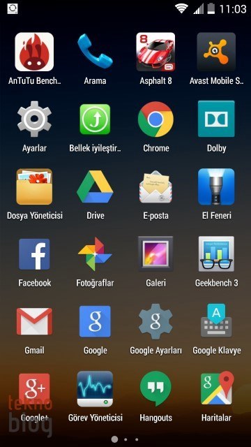 Google’ın Chrome, Gmail, Google+, Haritalar, Fotoğraflar, Hangouts gibi servislerine ve ürünlerine ait uygulamaları Google klasörü altında görüyoruz. Bunun dışında Avast Mobile Security, Dolby, Pil Yöneticisi, WPS Office gibi uygulamaları da Teknosa Preo P1’de yüklü olarak görüyoruz. El Feneri de arkadaki flaş ışığını istediğiniz zaman hızlı şekilde yakmanıza olanak sağlıyor. Klavye olarak da ister Google klavyesini, isterseniz de yüklü olarak gelen TouchPal klavye uygulamasını kullanabilirsiniz. Bunların dışında istediğiniz uygulama veya oyunu Google Play Store üzerinden indirebilirsiniz.