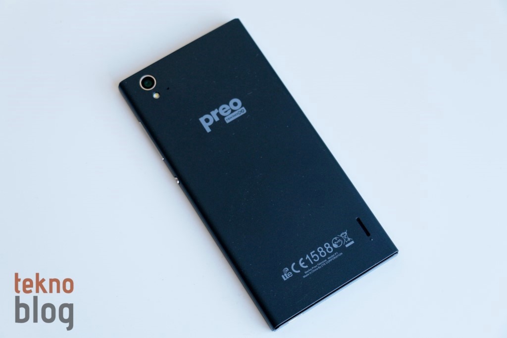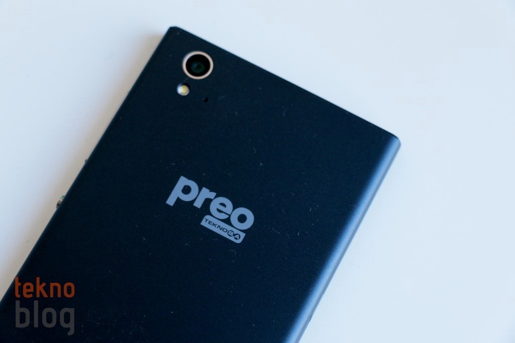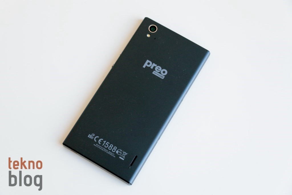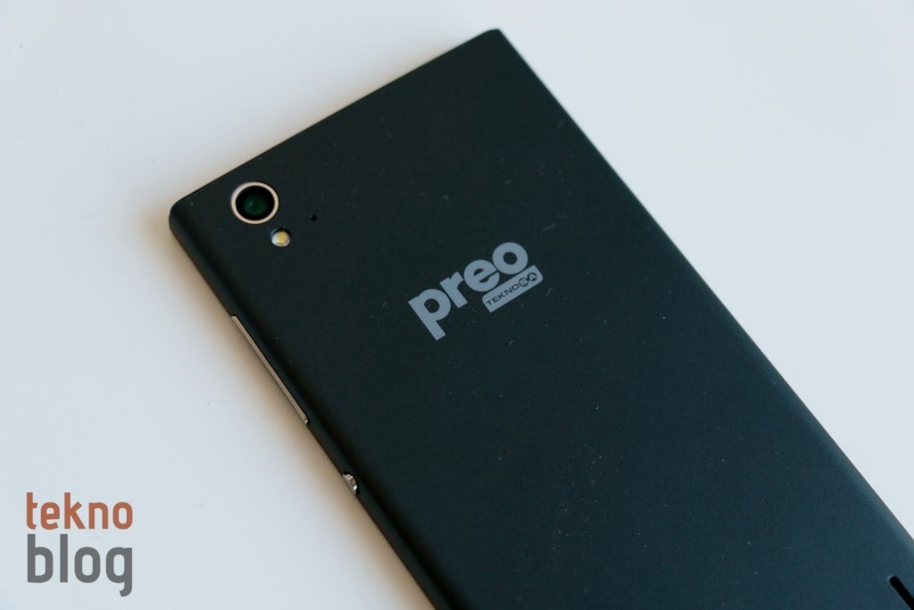 Preo P1’in çıkarılan bir kapağı yok. Bu da 2400 mAh kapasiteli pilinin sabit olduğu ve kullanıcılar tarafından değiştirilemediği anlamına geliyor. Bu arada microSIM ve microSD kart yuvaları da sol kenarda yer alıyor, kutudan çıkan sivri uçlu cisim yardımıyla bu tepsiler yerinden çıkarılabiliyor. Sağ kenarda ses tuşu ve daire şekilli güç butonunu görüyoruz. Alt kenarda microUSB portu ve ana mikrofon yer alırken, üst kenarda da 3.5 mm. kulaklık jakı bulunuyor. Arka tarafa baktığımızda 13 megapiksel kamera, LED flaş ve ikinci mikrofonun birbirine yakın şekilde sol üst köşede bulunduğunu görüyoruz. Teknosa Preo logosu biraz yukarı doğru olacak şekilde yatay eksende ortalanmış. Hoparlör ise sağ alt köşede yer alıyor. Bu küçük hoparlörün hemen ucuna yerleştirilmiş küçük bir topuz sayesinde Preo P1 bir yüzeye konulduğunda ses çıkışı için aralık oluşturuluyor.