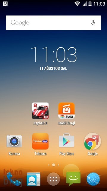 Öncelikle Teknosa kullanıcı arayüzüne pek müdahale etmemiş. KitKat’ın ham arayüzünü değiştirmeden sunmayı tercih etmiş. Özelleştirmeler çok sınırlı kalıyor, sadece duvar kağıdının özel olarak ayarlandığını, bununla birlikte ana ekrana da Teknosa uygulamasının eklendiğini görüyoruz. Ne de olsa karşımızda bir Teknosa telefonu var ve Teknosa’dan hızlı ve zahmetsiz şekilde alışveriş yapmak da bu telefonun temel önceliklerinden bir tanesi olmalı. İşte Teknosa uygulaması bunu sunuyor.