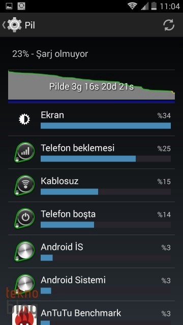 2400 mAh kapasiteli pil sabit olduğu için yedek pil taşıma imkanı söz konusu değil. Ancak pek ihtiyacınız olacak gibi de görünmüyor. Normal yoğunluklu bir kullanımda bu 2400 mAh kapasiteli pil işleri rahatlıkla görmeyi sağlıyor. Eğer bazı ayarlamaları yapar, 3G’yi gerekli görmediğiniz durumlarda kapatıp arka planda çalışan uygulamalarda birtakım organizasyonlar yaparsanız, o hâlde Teknosa Preo P1’i tek bir şarjla ikinci günde de kullanmak mümkün oluyor. Bu arada Pil Yöneticisi uygulamasını da kullanarak Teknosa Preo P1’in pil yönetimini daha verimli şekilde yapabilirsiniz.