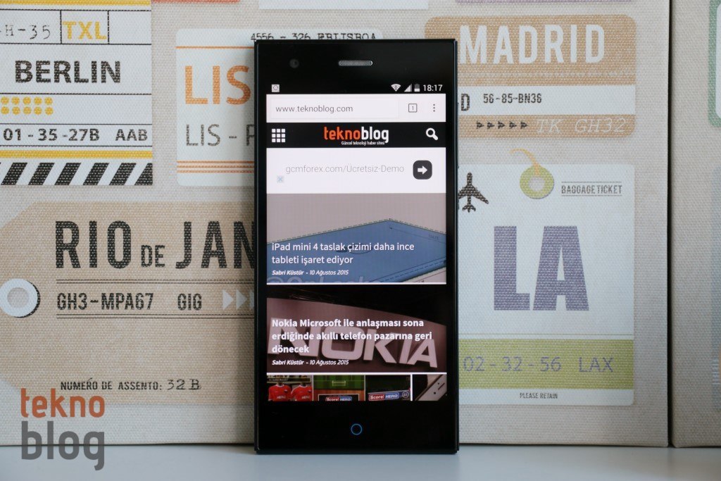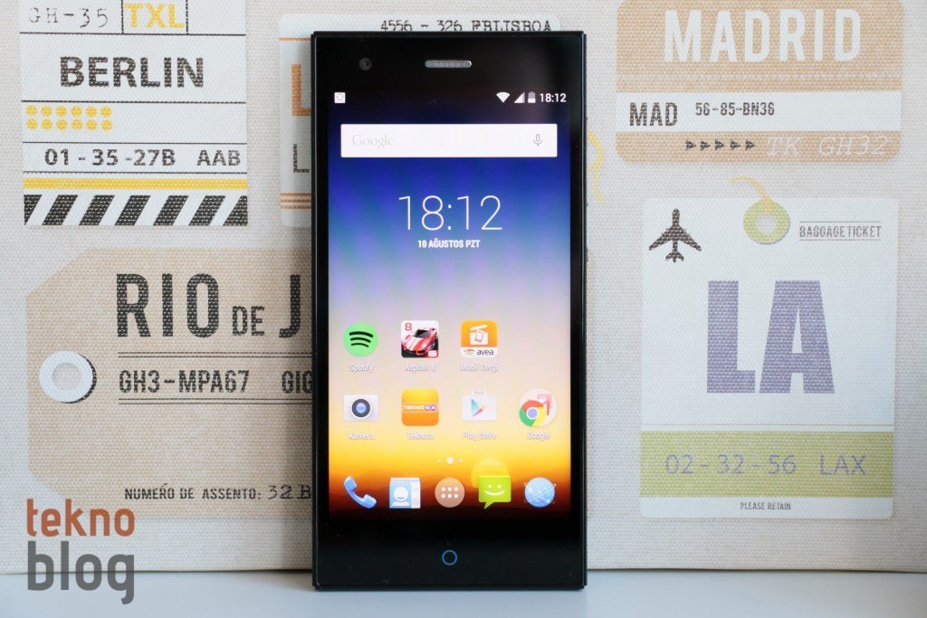 Teknosa Preo P1’in üretimi ZTE tarafından yapılıyor, zaten bunu telefonun tasarımından ve belirli detaylarından anlamak mümkün oluyor. Ekranın altında ZTE’nin son telefonlarında sıklıkla gördüğümüz şekilde mavi renkli, bir dokunmatik halka bulunuyor. Ana ekran tuşunun işlevlerini yerine getiren bu halka aynı zamanda bir bildirim gösterge lambası işlevini görüyor. Bildirim varken bu mavi halka aydınlatılıyor. Bunun solunda ve sağında nokta şeklinde geri ve çoklu görev kısayollarını da görüyoruz. Bunlar normal zamanda, kullanılmazken aydınlatılmıyor. Ekranın üstünde ahize hoparlörü ve 5 megapiksel ön kamerayı görüyoruz.