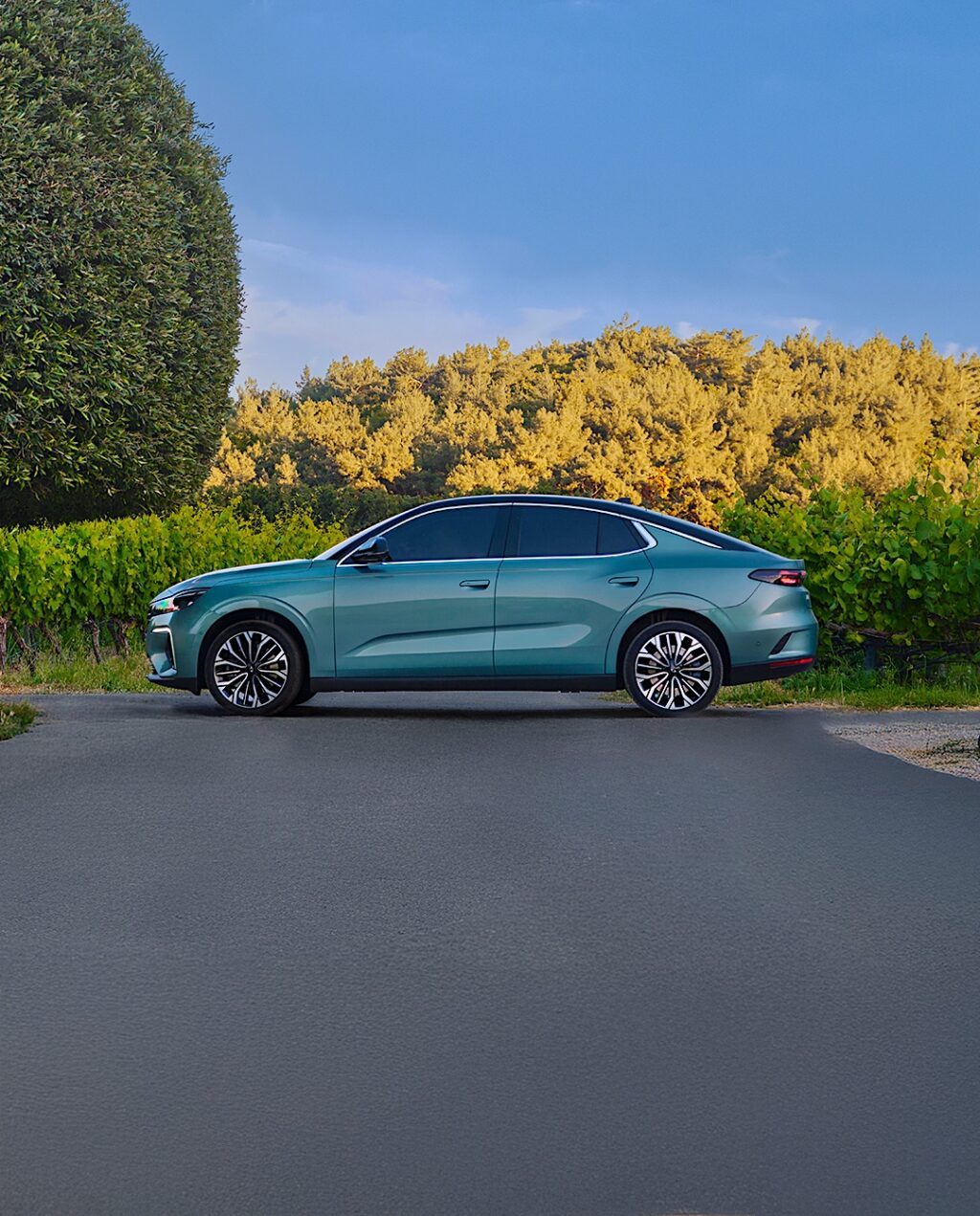 T10F’in dış tasarımı aerodinamik verimliliğe odaklanmış bir anlayışa sahip. Fastback siluet ve coupé tavan çizgisi aracın menzilini artırıyor. Gömülü kapı kolları sürtünmeyi azaltıyor. Arka kısımda yatay stop lambaları ve spoiler tasarımı bütünlüğü tamamlıyor. Ön yüzeyde lale motifleri, krom detaylar ve logoya gönderme yapan far grubu yer alıyor. Bu yaklaşım, markanın tasarım kimliğini güçlendiriyor.
