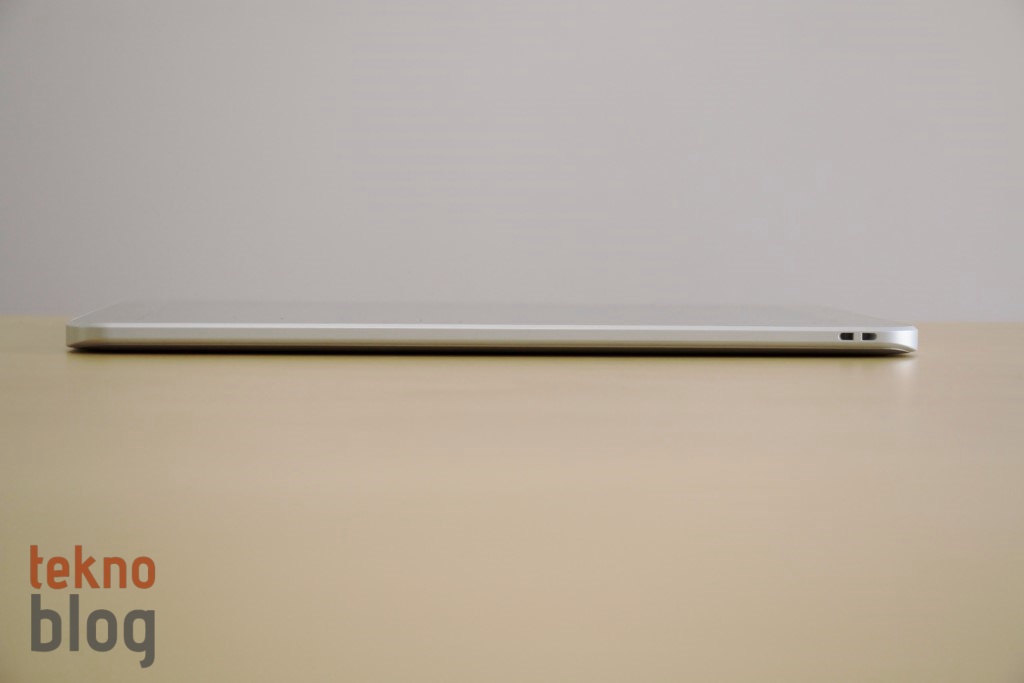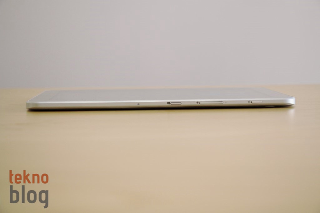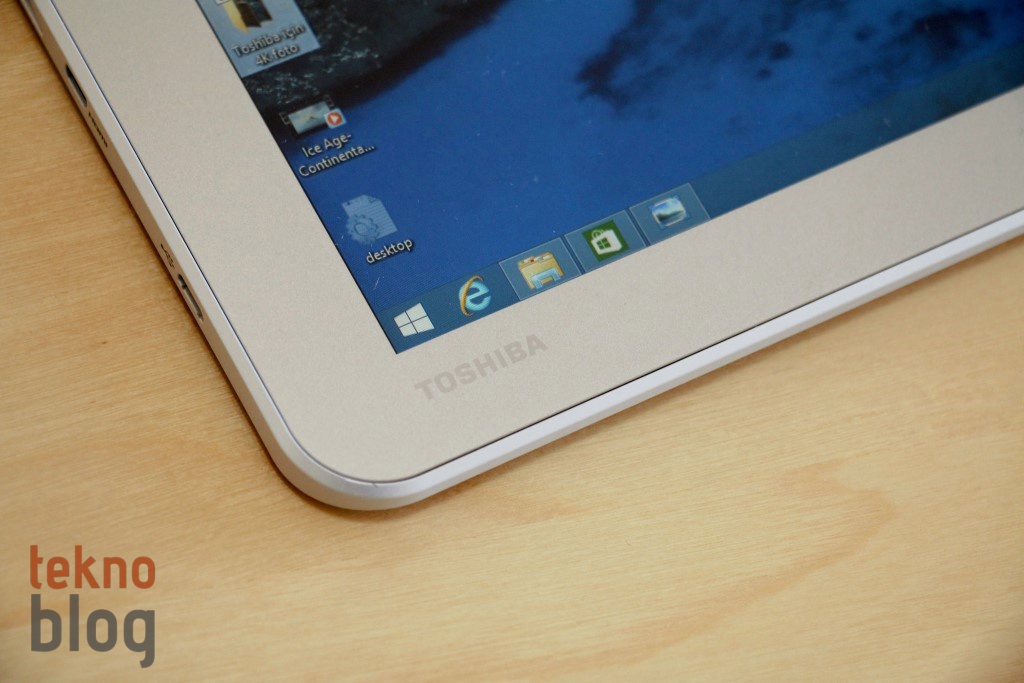Yaklaşık 9 mm. kalınlığıyla Toshiba Encore 2, iPad Air veya Samsung Galaxy Tab S tabletlerin 6.5-7.5 mm. arasında dolaşan değerlere sahip kalınlıklarına çok yaklaşamıyor. Ancak tabletin gövdesinin kalınlığı orijinal Encore tabletin 10.7 mm.’lik değerine göre hatırı sayılır oranda düşürülmüşe benziyor. Bu kalınlık Toshiba Encore 2’nin seyahatlerde çantalara veya koltuk arkası ceplere sığması için fazlasıyla yeterli. Ayrıca tableti tutarken de fazla sorun çıkmasına neden olmuyor.