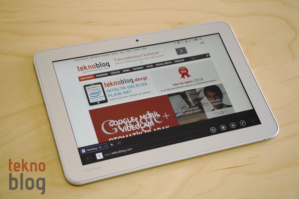 Toshiba Encore 2 WT10-B’yi kullanmaya başlarken Microsoft hesabınızla giriş yapmanız yerinde olacaktır. Böylelikle e-postalarınız, eğer varsa Windows 8 yüklü dizüstü bilgisayarınızdaki ayarlar, takvim kayıtları tabletinize otomatik olarak aktarılacaktır. Internet Explorer hazır şekilde bekliyor, ancak eğer isterseniz Chrome’un Windows 8 modern versiyonunu yükleyerek alışkanlıklarınızı burada da devam ettirebilirsiniz.