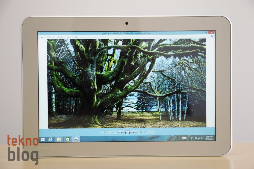 Toshiba Encore 2’nin kameralarıyla belki hayatınızın en önemli anlarını kayıt altına almayı tercih etmeyebilirsiniz, ancak çalışırken veya acil bir durumda ihtiyaç olduğunda özellikle 5 megapiksel arka kamera işinizi görecektir. Bu kamera otomatik odaklama özelliği sayesinde dokümanların çekimi için yeterli oluyor.