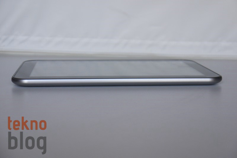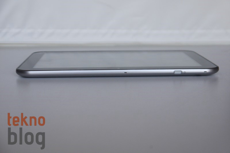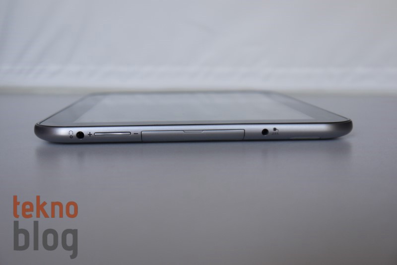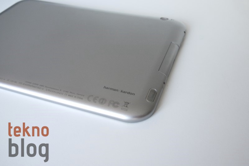 Excite Pro’nun sol kenarı epey dolu. Burada yukarıdan aşağı doğru 3.5 mm. kulaklık jakı, ses tuşları, bir kapak arkasına gizlenmiş microSD kart yuvası, microHDMI ve microUSB portları ile adaptör girişi yer alıyor. Sağ kenarda da bilek kayışı takmaya izin veren delikleri görüyoruz. Üstte de güç butonu ve yankı ve gürültü bastırma özelliğini mümkün kılan çift mikrofonlu yapıyı görüyoruz. Tabletin arkasında, sağ üst köşede 8 megapiksel kamera ve LED flaş bulunuyor. Alta doğru her iki kenarda Harman Kardon teknolojisiyle desteklenen stereo hoparlörleri görüyoruz.