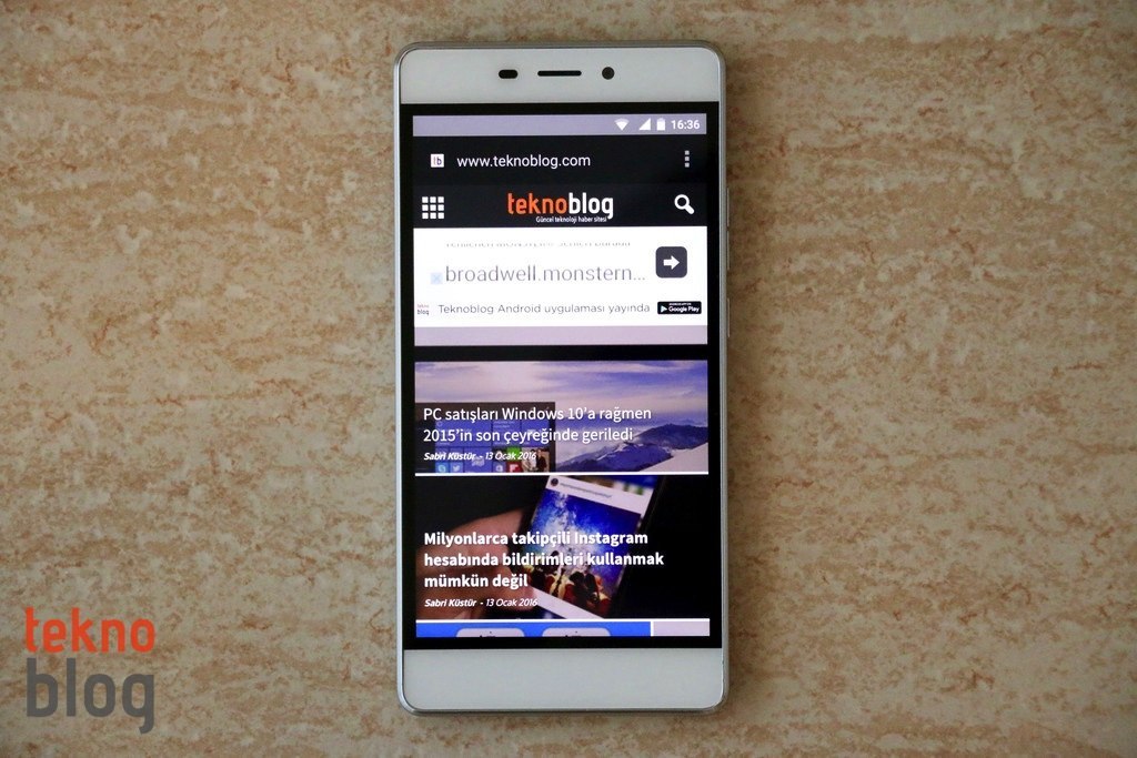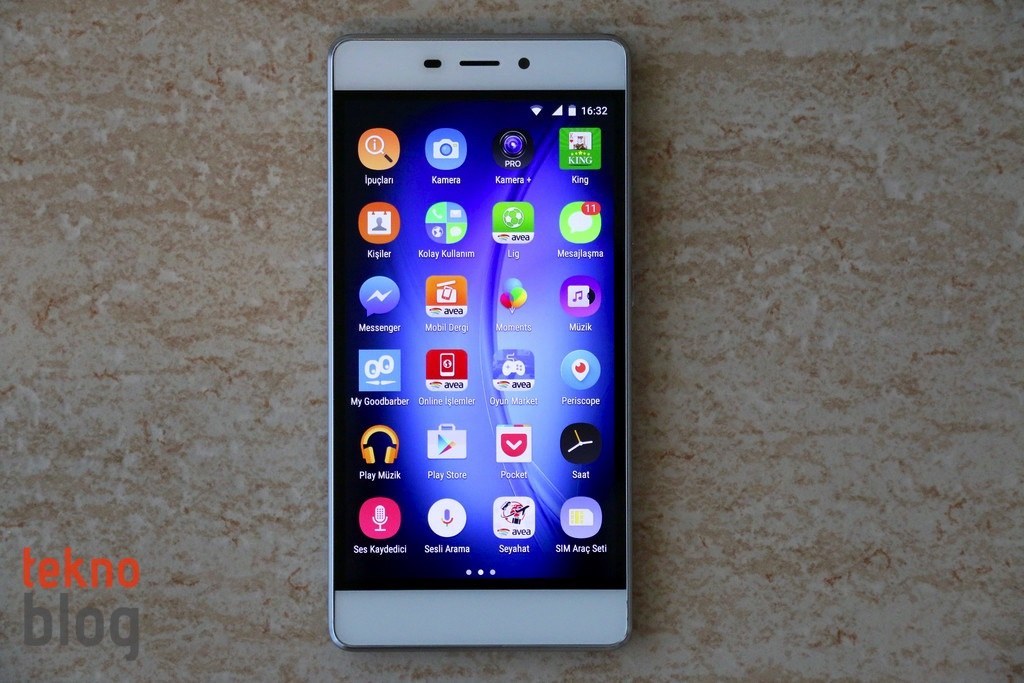 TT175’in 5.5 inç ekranını saran çerçeve fazla geniş alana sahip değil. Ekranın toplam yüzey alanına oranı yaklaşık yüzde 70. iPhone 6s Plus ile aynı büyüklükte ekrana sahip olan TT175’i biraz daha rahat kavrıyor ve tek elde kullanabiliyorsunuz. Arka yüzeyin uzun kenarlara doğru hafif kıvrık olması, ayrıca ince kenarları da TT175’in ergonomisine olumlu katkıda bulunuyor.