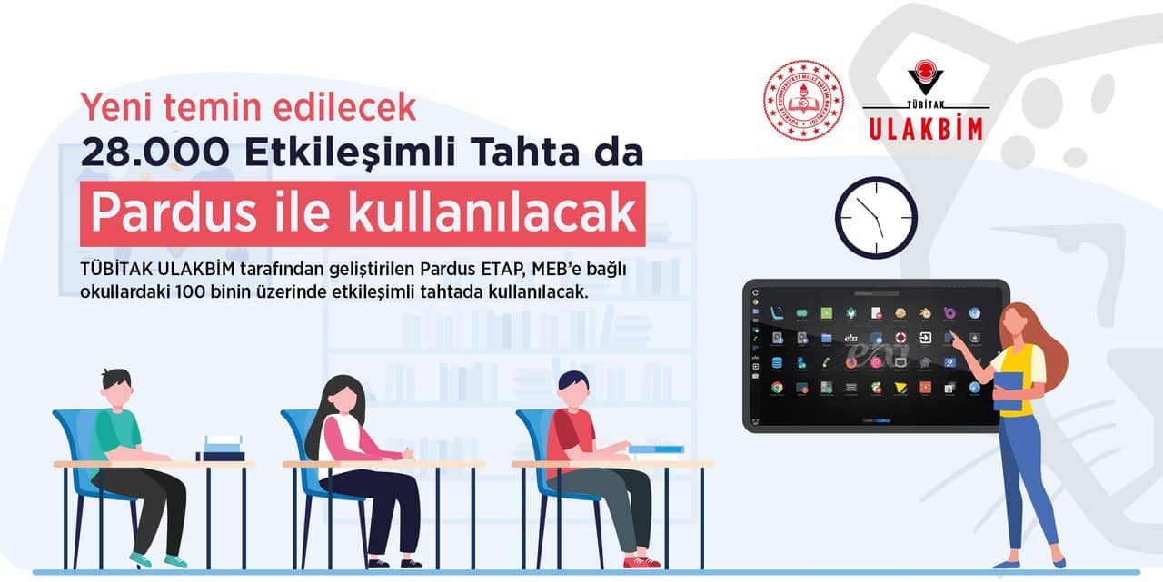 TÜBİTAK ULAKBİM tarafından geliştirilen Pardus Etkileşimli Tahta Arayüzü, Milli Eğitim Bakanlığına bağlı okullardaki 100 binin üzerinde etkileşimli tahtada kullanılacak. Etkileşimli tahtalar için geliştirilen Pardus ETA işletim sistemi; MEB Yenilik ve Eğitim Teknolojileri Genel Müdürlüğü tarafından temin edilen 28 bin Arçelik etkileşimli tahtada daha kullanıma sunuluyor.