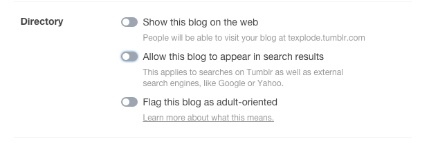 Tumblr bu hamlesini bir tür güvenlik önlemi olarak tanımlarken, böylelikle kullanıcıların paylaşımlarını kimlerin görüp kimlerin göremeyeceğini daha sıkı biçimde kontrol edebileceğini belirtti. Blogun web’de görüntülenmemesi seçeneği işaretlendiğinde blogun URL’sini ziyaret edenler bir 404 hatasıyla karşılaşacaklar. Blogu Tumblr üzerinden takip edenler ise erişimde herhangi bir engelleme görmeyecekler.