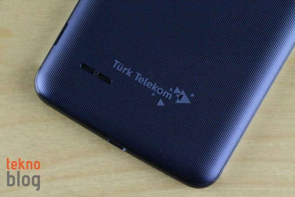 Çıkarılabilir arka kapağın altında da pil, microSD ve nanoSIM kart yuvaları bulunuyor. Hoparlör de Türk Telekom logosunun hemen altında yer alıyor.