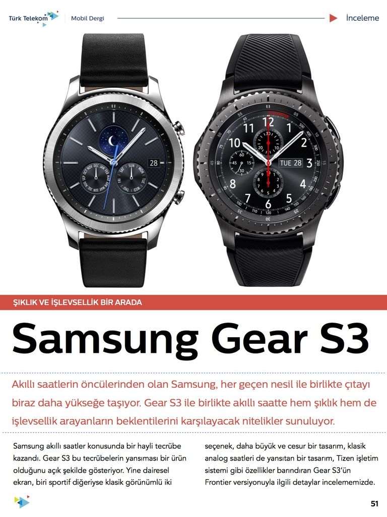 Bir başka akıllı saat, geçen yılın sonlarına doğru ülkemizde satışa sunulan Samsung Gear S3 de inceleme sayfalarının diğer konuğu oluyor. Gear S3’ün Frontier modeli hakkındaki detaylar, bu akıllı saatin sunduğu kullanıcı deneyimi ve fitness özellikleri bu sayıda detaylı şekilde işleniyor.