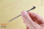 Ekran kaleminin nerede olduğunu bulmakta zorluk çekebilirsiniz, çünkü bu kalem sağ üst köşeye ustalıkla gizlenmiş. Kalemi yuvasından çıkarmak için alt kısımdaki boşluktan tırnağınızla yukarı doğru itmeniz gerekiyor.
